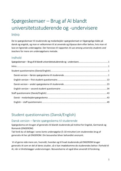 Selvom projektet har haft fokus på ét instituts sproguddannelserne på Københavns Universitet og den forestående implementering af universitetets nye AI-politik, kan projektets resultater og anbefalinger være til inspiration for andre uddannelsesinstitutioner og fagpersoner, og undersøgelsens spørgeskemaer (kan tilgås under Tilknyttede materialer) kan frit anvendes i lignende undersøgelser.