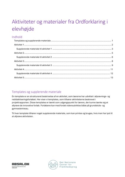 Projektrapporten dykker ned i projektdeltagernes arbejde med at udvikle aktiviteter til engelsk- og tyskfaget pba. Minimal Sprog-tilgangen.